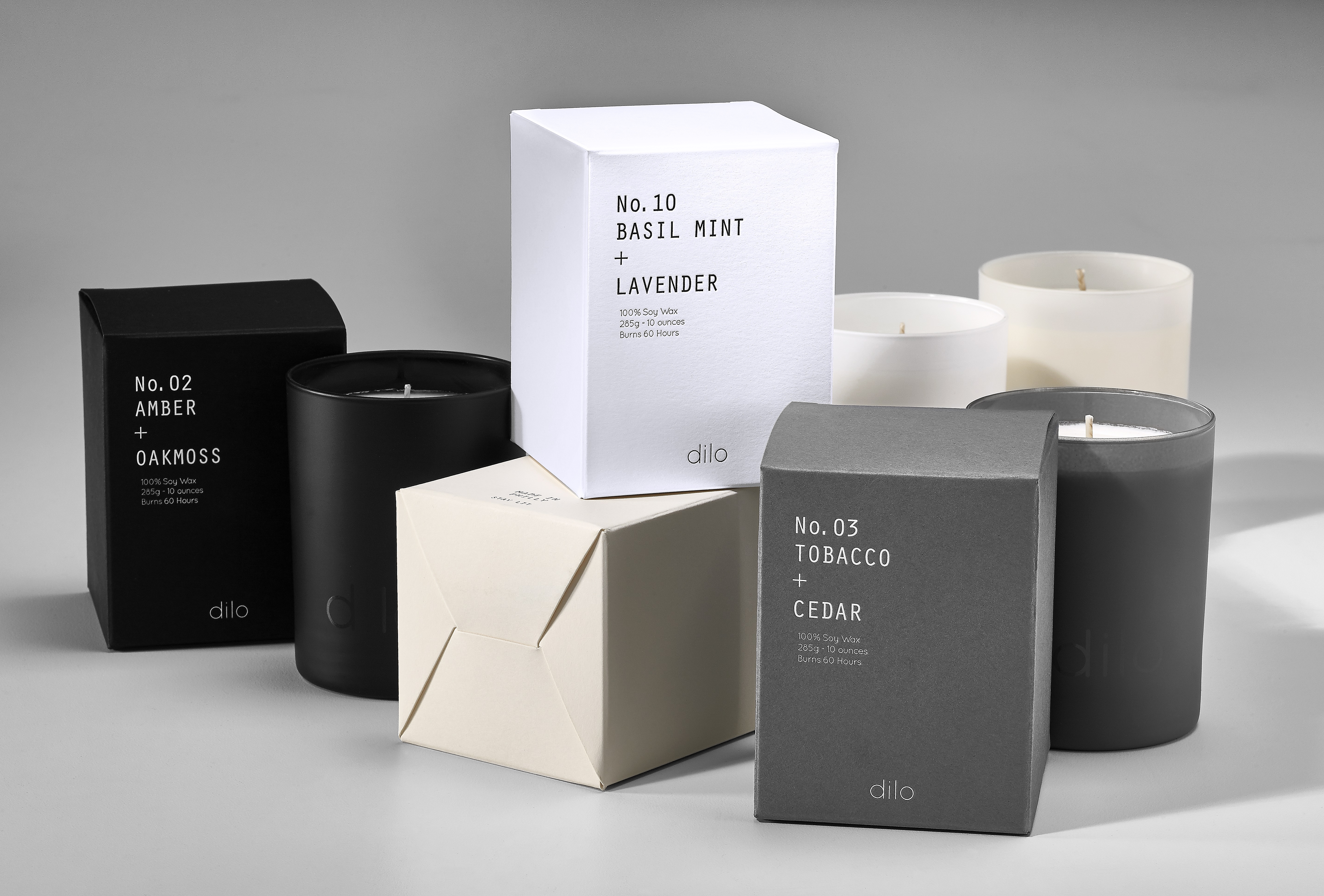 "When people see our candles online in a picture, they can't smell them. I need to make an impression based on visuals. I knew I wanted an open vessel with no lid for the SHADES collection, but with that, you have two options: a dust cover that sits directly on the wax or a box. I went with a box because it could become part of the product's identity," says Dave. "The product itself is so minimal. The box has to be an extension of the product, not just a holder."
